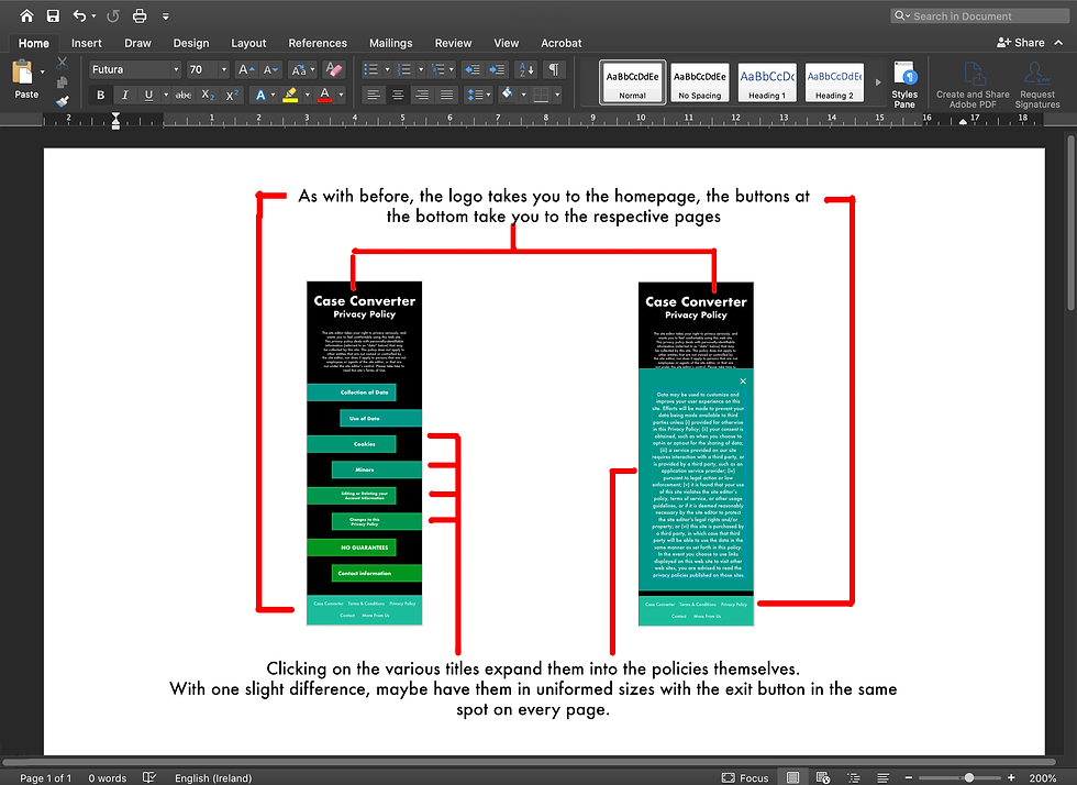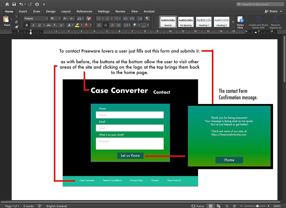 Getting my head around assets, and screens, I began planning an eye-catching layout to match the redesigned personality of the Case Converter. Creating a style guide, with the potential colours and fonts I set about designing the high fidelity prototype in Adobe XD. Sharing iterations with the team at Freeware Lovers, getting and dealing with the feedback.